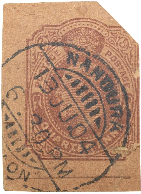 Post-Card Stamp of Edward VII 1/4 Anna with ‘Nandura’ Cancellation – Used Condition as per Image.