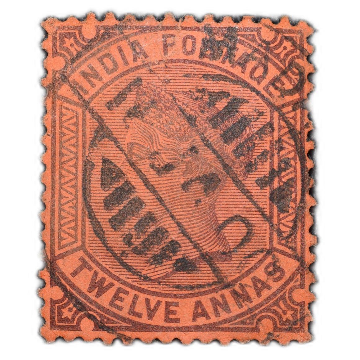 Postage Stamp of Victoria 12 Annas Red Colour – Used Condition as per Image.