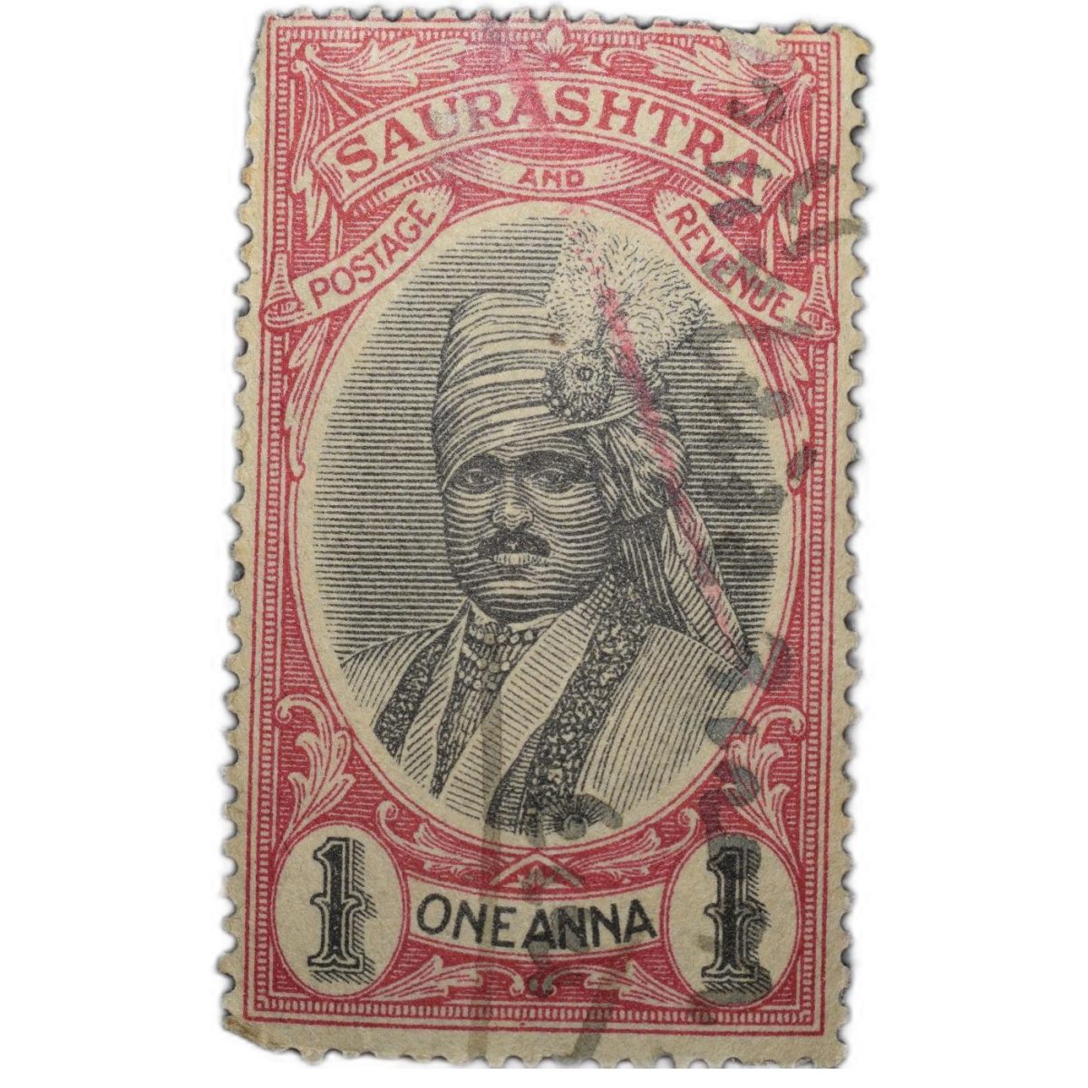 Postal & Revenue Stamp of Saurashatra State – Red & Black Colour 1 Anna Used Condition as per Image.