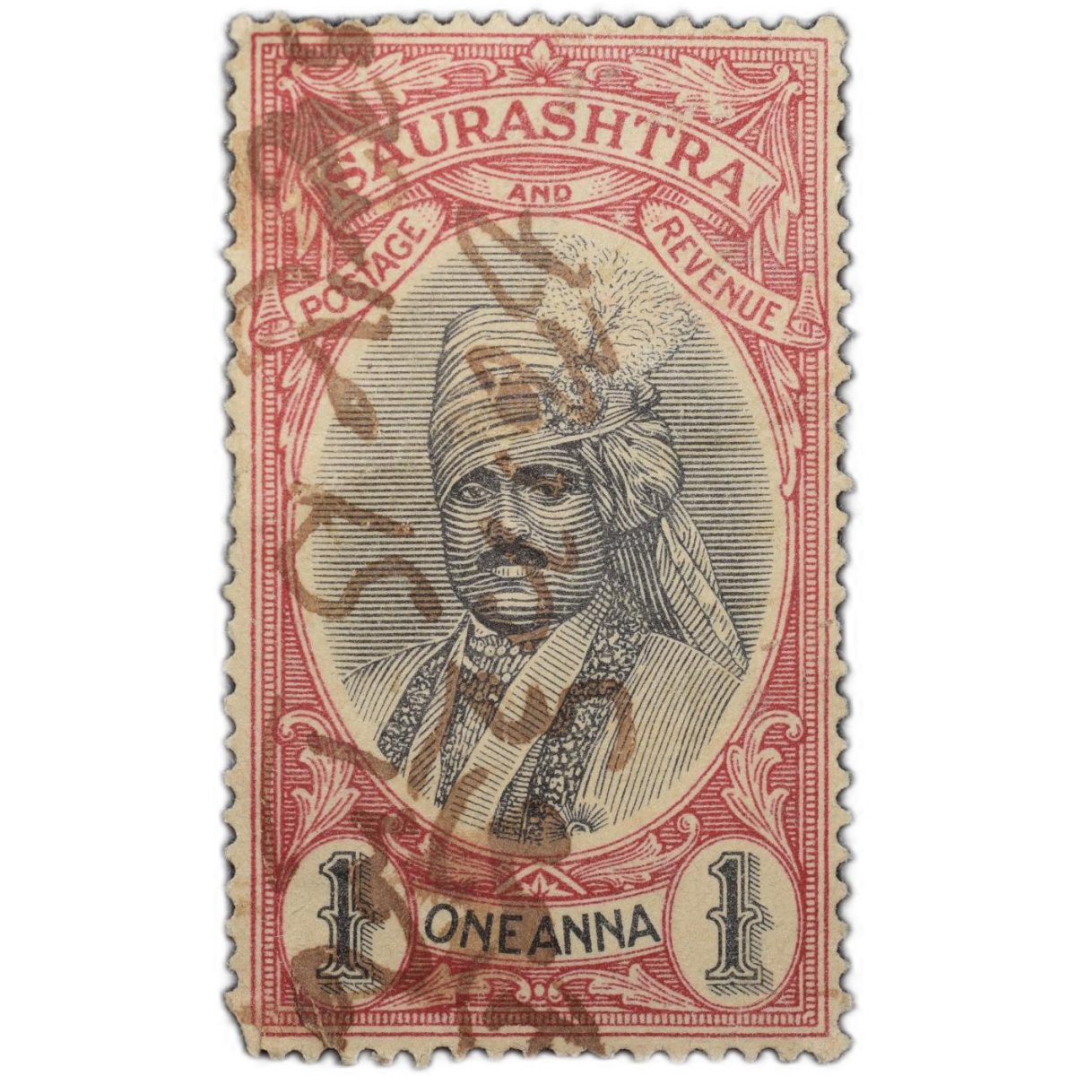 Postal & Revenue Stamp of Saurashatra State – Red & Black Colour 1 Anna Used Condition as per Image.