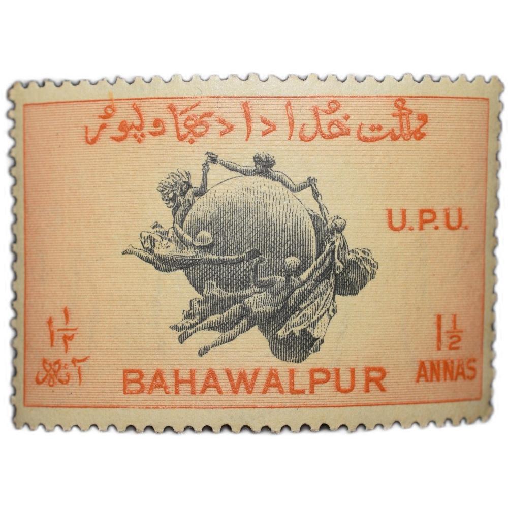 Delve into the rich history of Bahawalpur State with this exquisite Postal Stamp in vibrant orange color, denominated at 1-1/2 Annas. Issued in mint un-used condition, this stamp showcases the emblematic imagery of the Bahawalpur region. The stamp, dating back to [year], reflects the cultural and historical significance of this princely state in British India. Collectors and history enthusiasts will be captivated by the intricate design and craftsmanship of this stamp, making it a prized addition to any collection. Its fine condition and authenticity add to its collectible value, appealing to those seeking rare and unique artifacts. This stamp offers a glimpse into a bygone era and serves as a tangible piece of history, preserving the legacy of Bahawalpur State for generations to come.