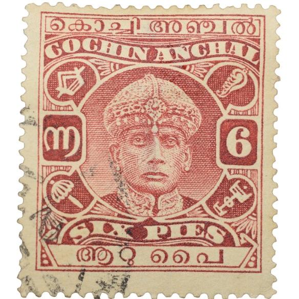 Postal Stamp of Cochin Anchal – Brown 6 Pies Used Condition as per Image.