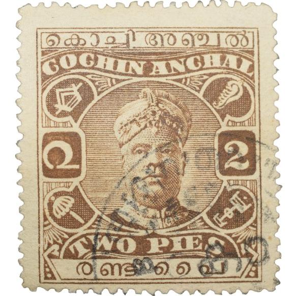 Postal Stamp of Cochin Anchal – Brown Colour 2 Pies – Used Condition as per Image.