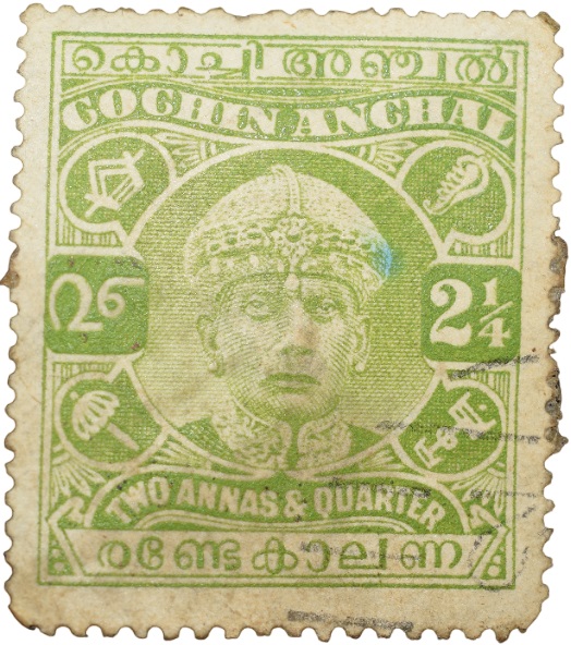 Postal Stamp of Cochin Anchel Green Colour 2-1/4 Annas – Used Condition as per Image.