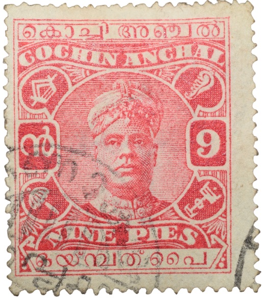 Postal Stamp of Cochin Anchel Pink-Red Colour 9 Pies – Used Condition as per Image.