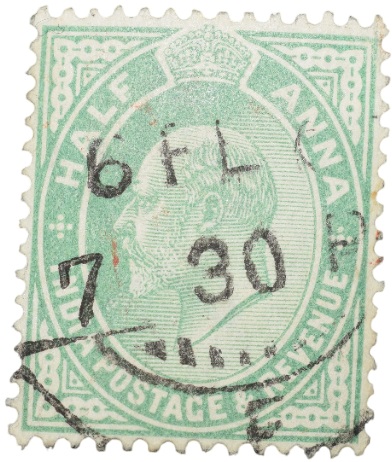 Postal Stamp of Edward VII 1/2 Anna Green Clour – Used Condition as per image.