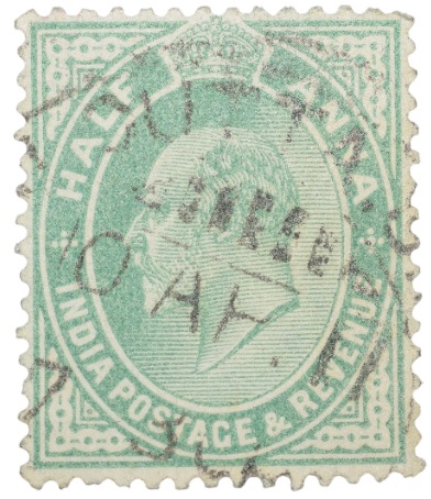 Postal Stamp of Edward VII 1/2 Anna Green Clour – Used Condition as per image.