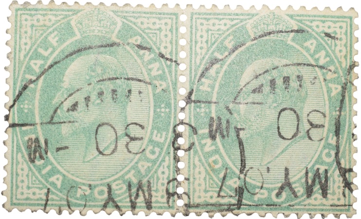 Postal Stamp of Edward VII 1/2 Anna Green Colour – Used Condition as per image.