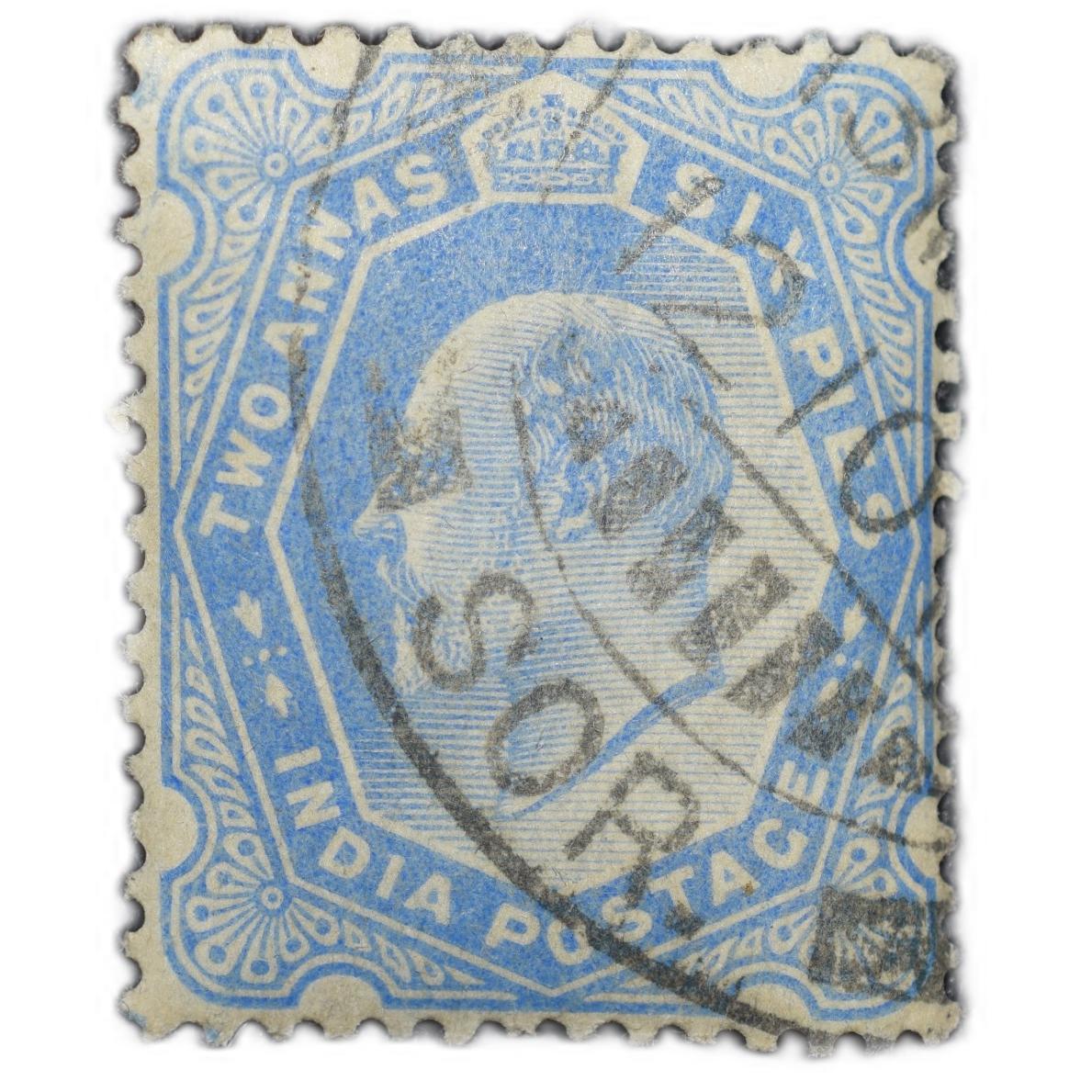 Postal Stamp of Edward VII 2 Annas 6 Pies Blue Colour Used Condition as per Image.