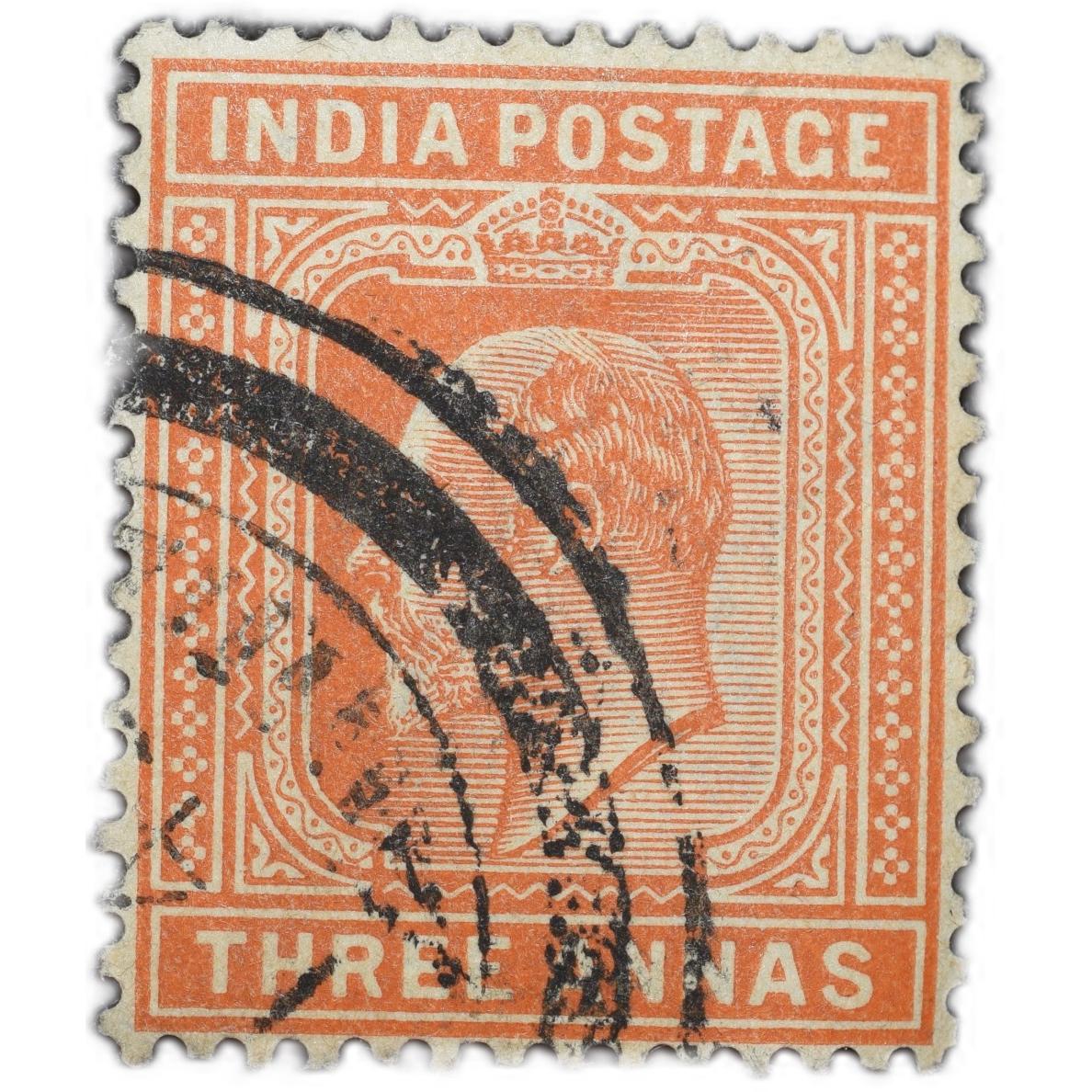 Postal Stamp of Edward VII 3 Annas Orange-Brown Colour Used Condition as per Image.