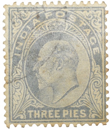 Postal Stamp of Edward VII 3 Pies Grey Colour – Used Condition as per image.