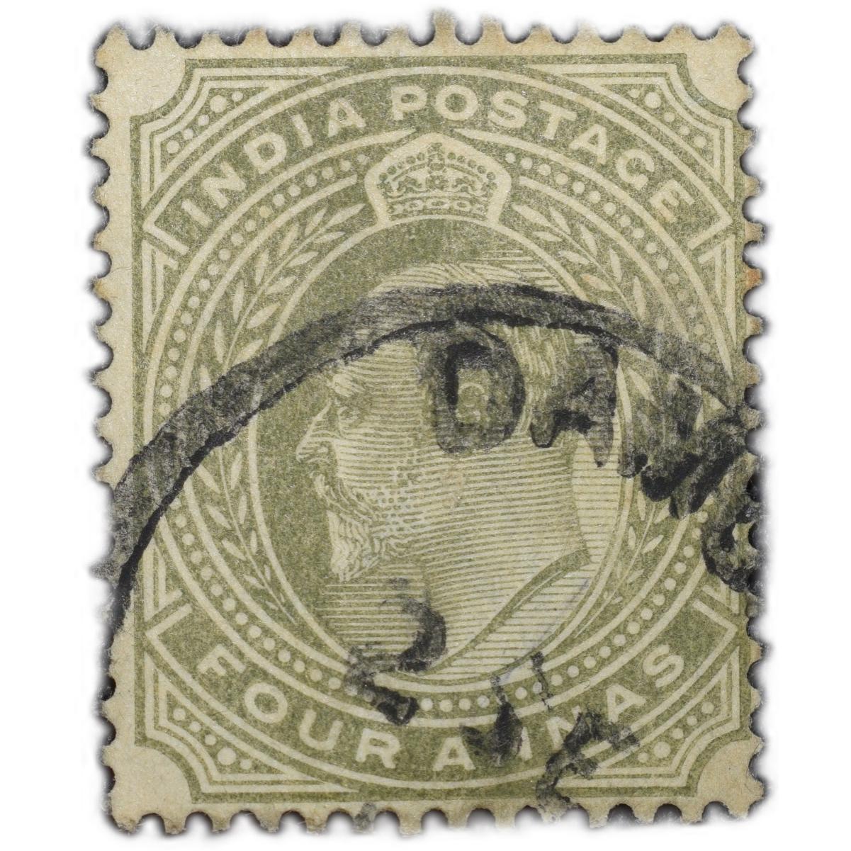 Postal Stamp of Edward VII 4 Annas Olive Colour Used Condition as per Image.