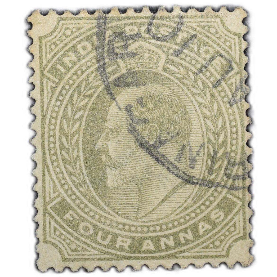 Postal Stamp of Edward VII 4 Annas Olive Colour Used Condition as per Image.