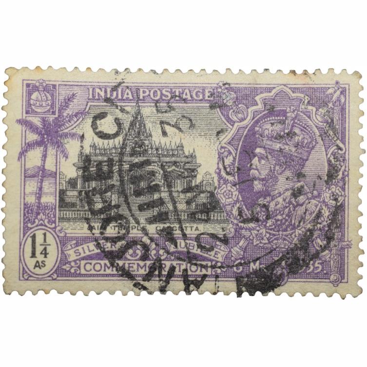Postal Stamp of George V 1-1/4 Annas Purple Colour Silver Jubilee Commemoration Issue Used Condition