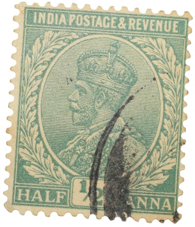Postal Stamp of George V 1/2 Anna Green Clour – Used Condition as per image.