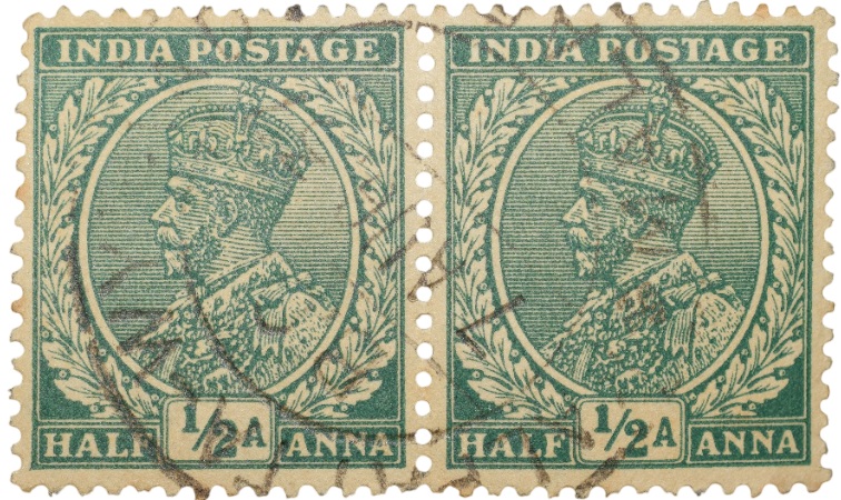 Postal Stamp of George V 1/2 Anna Green Colour -Block of 2 Stamps – Used Condition as per Image.