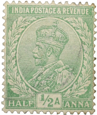 Postal Stamp of George V 1/2 Anna Green Colour – Used Condition as per Image.