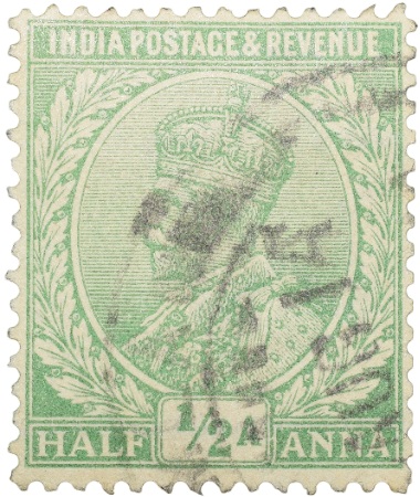 Postal Stamp of George V 1/2 Anna Green Colour – Used Condition as per Image.