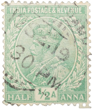 Postal Stamp of George V 1/2 Anna Green Colour – Used Condition as per Image.