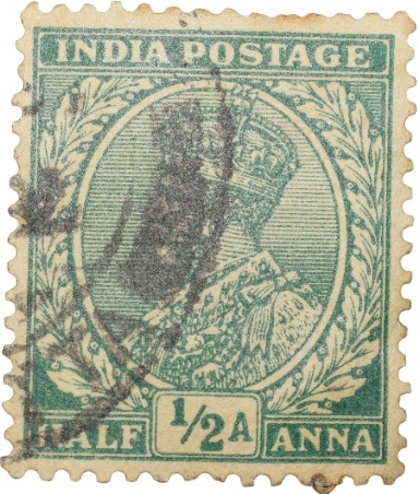 Postal Stamp of George V 1/2 Anna Green Colour – Used Condition as per Image.