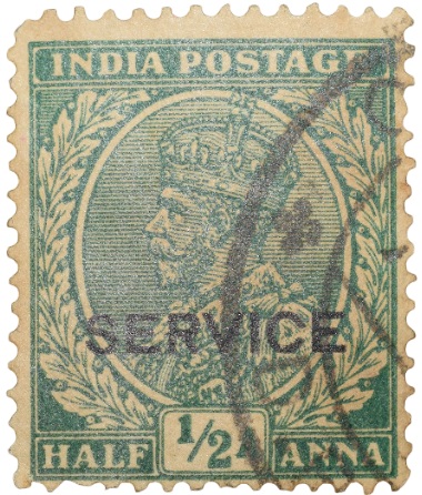 Postal Stamp of George V 1/2 Anna Green Colour – Used Condition as per Image.