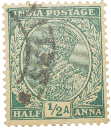Postal Stamp of George V 1/2 Anna Green Colour – Used Condition as per Image.