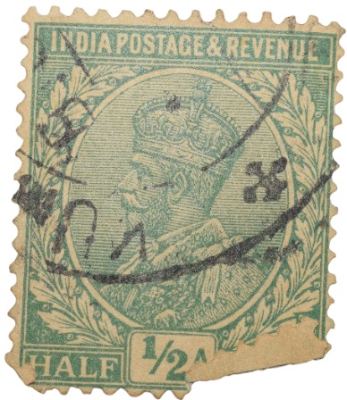 Postal Stamp of George V 1/2 Anna Green Colour – Used Condition as per image.