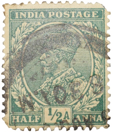 Postal Stamp of George V 1/2 Anna Green Colour – Used Condition as per image.