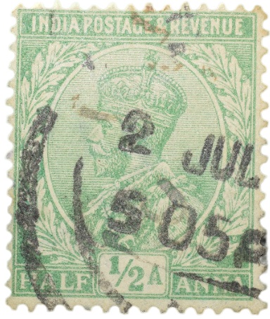 Postal Stamp of George V 1/2 Anna Green Colour – Used Condition as per Image.