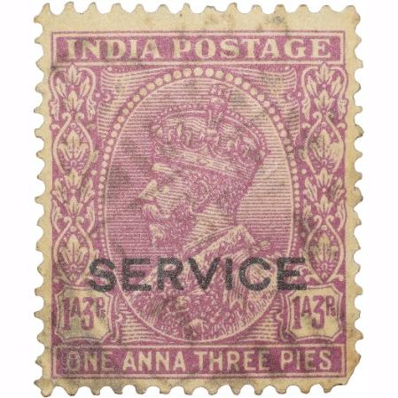 Postal Stamp of George V 1 Anna 3 Pies Mauve Colour – Over Printed in Black ‘Service’ – Used Conditi