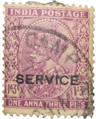 Postal Stamp of George V 1 Anna 3 Pies Pink Colour ‘Service’ Over Printed – Used Condition as per Image.