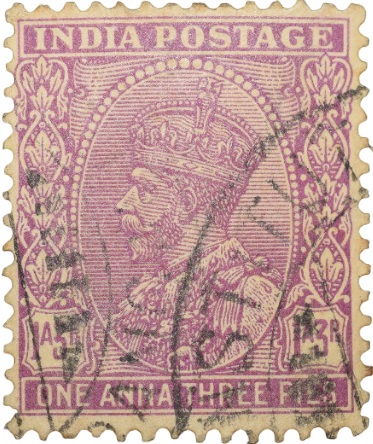 Postal Stamp of George V 1 Anna 3 Pies Pink Colour – Used Condition as per Image.