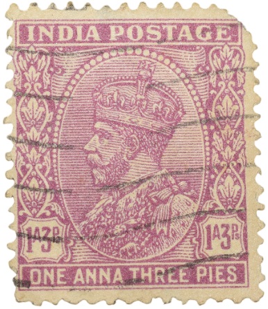 Postal Stamp of George V 1 Anna 3 Pies Pink Colour – Used Condition as per Image.