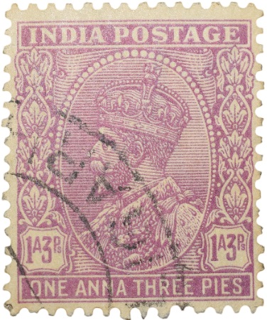 Postal Stamp of George V 1 Anna 3 Pies Pink Colour – Used Condition as per Image.