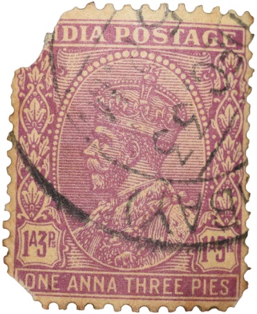Postal Stamp of George V 1 Anna 3 Pies Pink Colour – Used Condition as per Image.