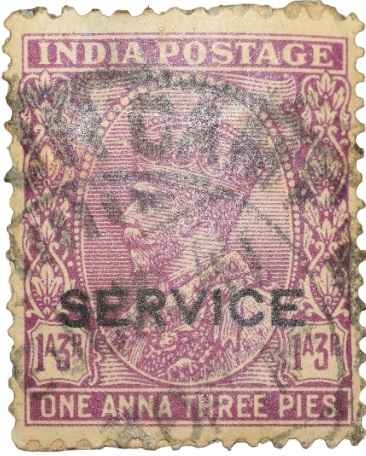 Postal Stamp of George V 1 Anna 3 Pies Purple Colour Service Over Printed in Black – Used Condition as per Image.