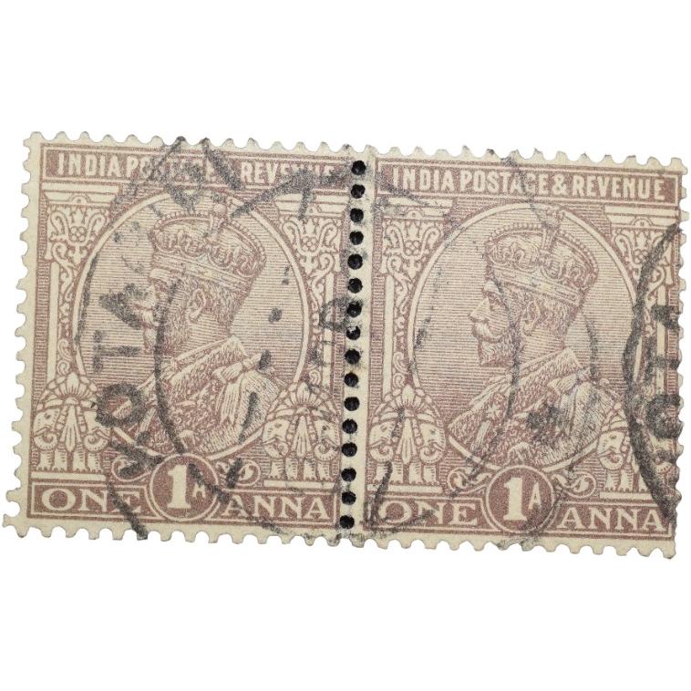 Postal Stamp of George V 1 Anna Brown Colour – Block of 2 stamps – Used Condition as per Image.