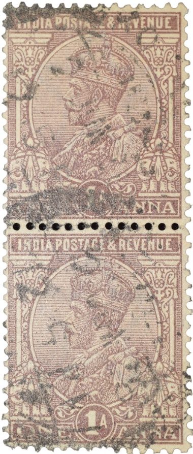 Postal Stamp of George V 1 Anna Brown Colour – Block of 2 Stamps – Used Condition as per Image.