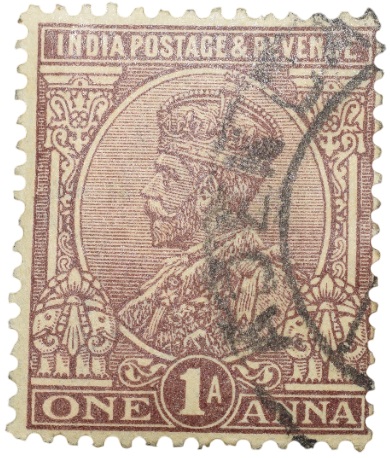Postal Stamp of George V 1 Anna Brown Colour – Used Condition as per image.