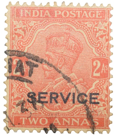 Postal Stamp of George V 2 Annas Orange-Red Colour – Used Condition as per Image.