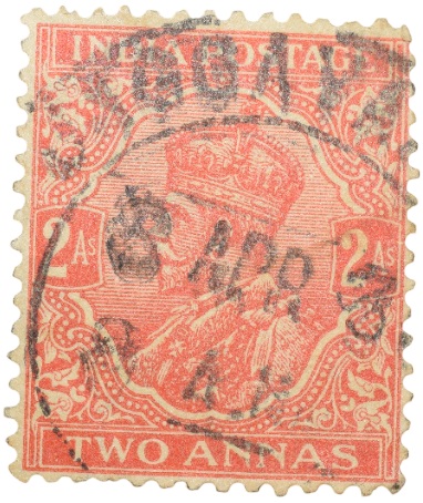 Postal Stamp of George V 2 Annas Red-Orange Colour – Used Condition as per image.