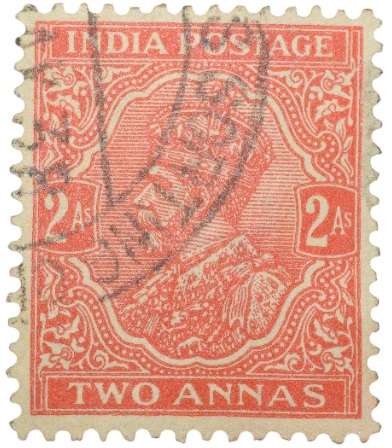 Postal Stamp of George V 2 Annas Red-Orange Colour – Used Condition as per image.