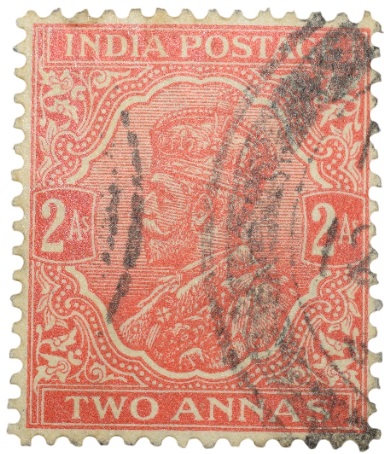 Postal Stamp of George V 2 Annas Red-Orange Colour – Used Condition as per image.