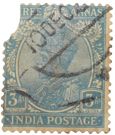 Postal Stamp of George V 3 Annas Blue Colour -Used Condition as per Image.