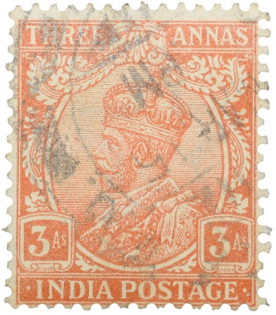 Postal Stamp of George V 3 Annas Orange Colour – Used Condition as per image.