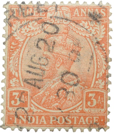Postal Stamp of George V 3 Annas Orange Colour – Used Condition as per image.