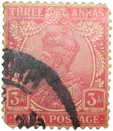 Postal Stamp of George V 3 Annas Pink-Red Colour – Used Condition as per Image.