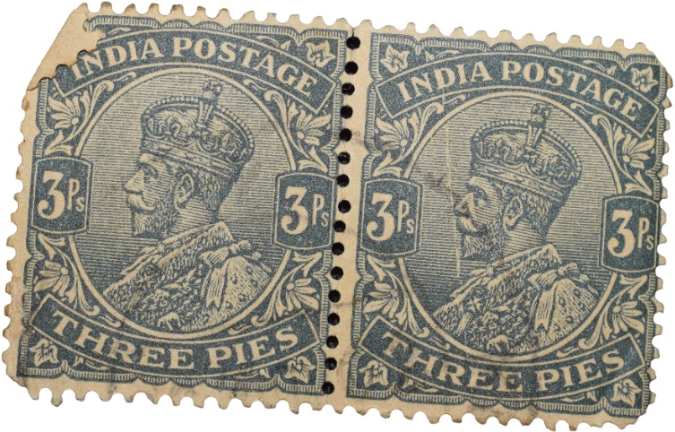 Postal Stamp of George V 3 Pies Grey Colour – Block of 2 Stamps – Used Condition as per Image.