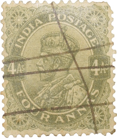 Postal Stamp of George V 4 Annas Olive Green Colour – Used Condition as per Image.