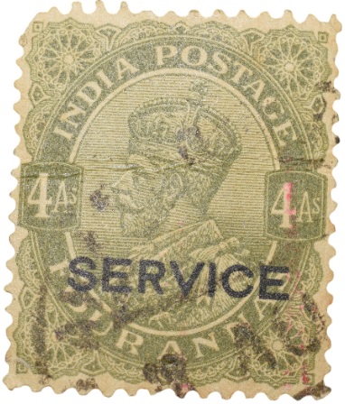 Postal Stamp of George V 4 Annas Olive Green Colour – Used Condition as per image.